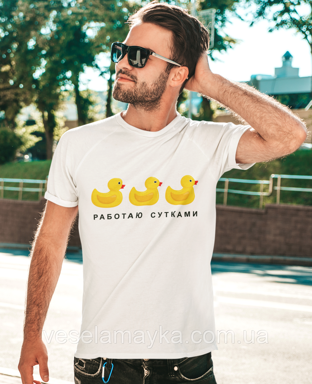 Футболка з веселими качечками та написом "Работаю чарами"